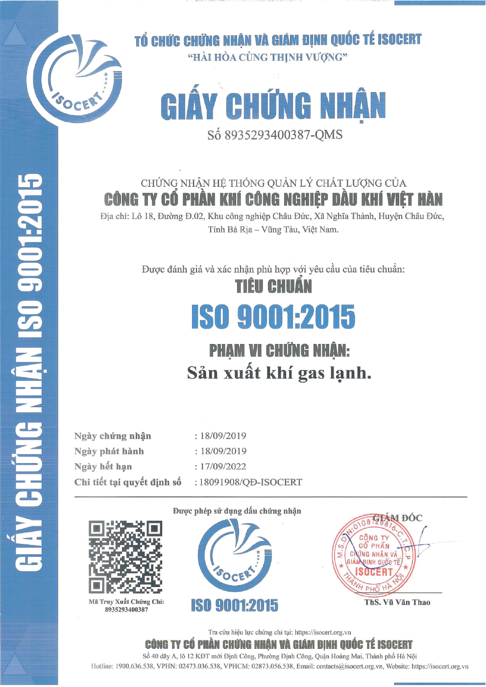 To ensure safety in the production and trading of industrial gases, PVCK has built a system of factories, workshops and warehouses that meet national standards and technical regulations. These standards and regulations include: